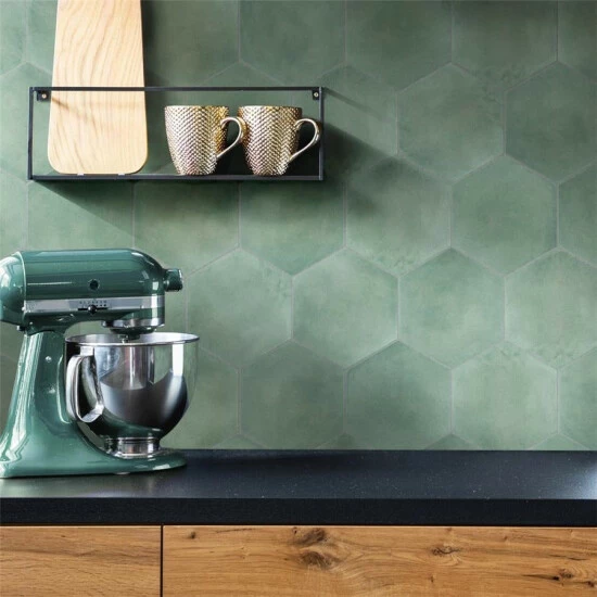 Reinterpreting the beauty of land and sea from an artist’s viewpoint, our Matter Hex Green Porcelain Floor and Wall Tile offers a highly personal and unique view of nature’s most beautiful landscapes. This square tile features soft green tones that echo the look and feel of the Northern Lights in Lapland. As a result of refined digital inkjet techniques and color blending, this tile offers exquisite depth and dimension that is further enhanced by its textured, mixed finish surface. Available in twenty print variations that are randomly distributed throughout each case, this tile offers a truly one-of-a-kind look. Its impervious, frost-resistant, and durable features make it an ideal choice for both indoor and outdoor commercial and residential installations including kitchens, bathrooms, backsplashes, showers, and pools. This tile is an ideal choice on its own or paired with other products in our Matter Collection to create a customized installation. Tile is the better choice for your space. This tile is made from natural ingredients, making it a healthy choice as it is free from allergens, VOCs, formaldehyde, and PVC.