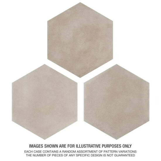 Reinterpreting the beauty of land and sea from an artist’s viewpoint, our Matter Hex Taupe Porcelain Floor and Wall Tile offers a highly personal and unique view of nature’s most beautiful landscapes. This square tile features beige and grey tones that echo the look and feel of rugged, rocky coastlines. As a result of refined digital inkjet techniques and color blending, this tile offers exquisite depth and dimension that is further enhanced by its textured, mixed finish surface. Available in twenty print variations that are randomly distributed throughout each case, this tile offers a truly one-of-a-kind look. Its impervious, frost-resistant, and durable features make it an ideal choice for both indoor and outdoor commercial and residential installations including kitchens, bathrooms, backsplashes, showers, and pools. This tile is an ideal choice on its own or paired with other products in our Matter Collection to create a customized installation. Tile is the better choice for your space. This tile is made from natural ingredients, making it a healthy choice as it is free from allergens, VOCs, formaldehyde, and PVC.