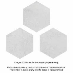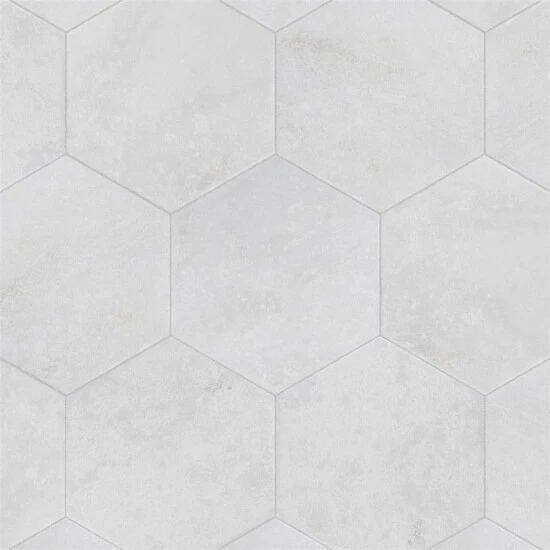 Blending two distinct textures, our Mazzo Hex White 8-1/2″ x 9-3/4″ Porcelain Floor and Wall Tile mimics the rustic appearance of natural stone and the timeless beauty of marble. This matte hexagon tile features natural mineral-like pattern variations and veining striations in soft light grey hues, replicating the appearance of aged stone. Composed of rich detail and a smooth slip-resistant surface this unique porcelain tile offers decorative, rustic beauty through realistic scuffs and spots that are the marks of well-loved, worn, century-old tile. This innovative and sophisticated display of geometric design is visually appealing and versatile, and adapts to any stylistic context. Its impervious, frost-resistant and durable features make this an ideal choice for both commercial and residential indoor and outdoor installations including, kitchens, bathrooms, backsplashes, showers, hallways, entryways, patios and fireplace facades. This tile is a perfect choice on its own or paired with other products in the Mazzo Hex Collection. Tile is the better choice for your space. This tile is made from natural ingredients, making it a healthy choice as it is free from allergens, VOCs, formaldehyde and PVC.
