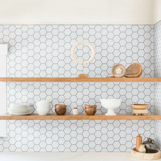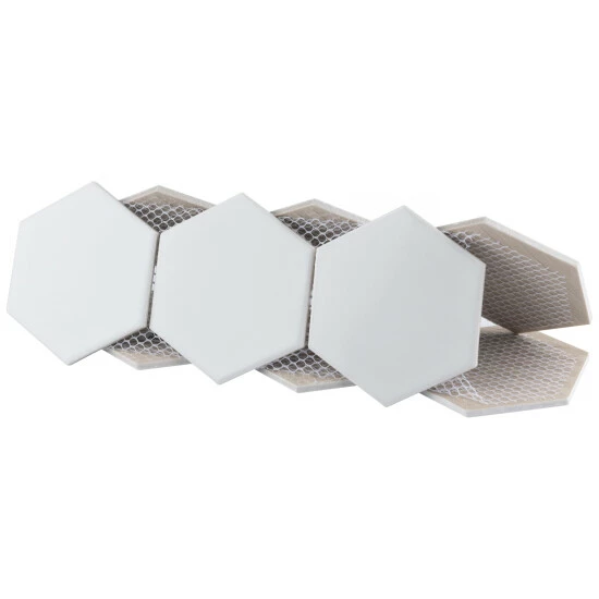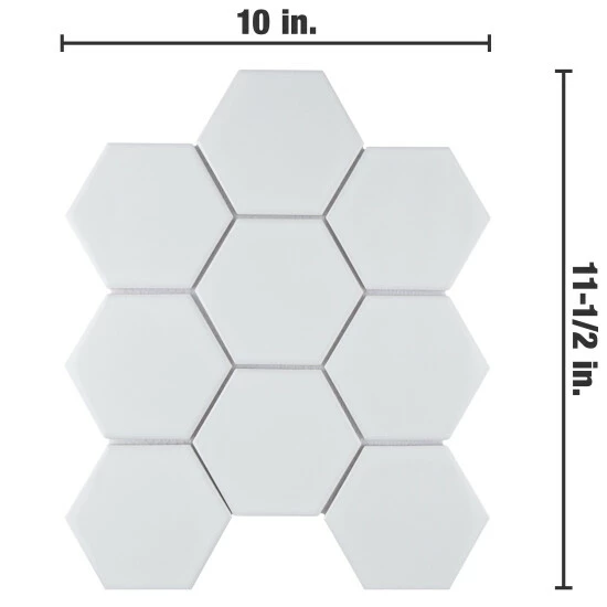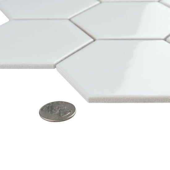 Transform your space into a tribute to retro design with our Metro Super 4″ Hex Glossy White Porcelain Floor and Wall Mosaic Tile. As a modern, enlarged deviation from the classic hexagon mosaic, this fresh option is a throwback to traditional retro design with a contemporary feel. Glossy white porcelain hexagons are arranged on an interlocking mesh to create a seamless installation. This minimalistic geometric floor and wall mosaic is unique yet simplistic enough to integrate into any design, ranging from traditional style renovations to modern home projects. Its impervious and frost resistant features make this an ideal tile for indoor and outdoor installations including kitchens, bathrooms, backsplashes, showers, and fireplace facades. Tile is the better choice for your space. This tile is made from natural ingredients, making it a healthy choice as it is free from allergens, VOCs, formaldehyde, and PVC.