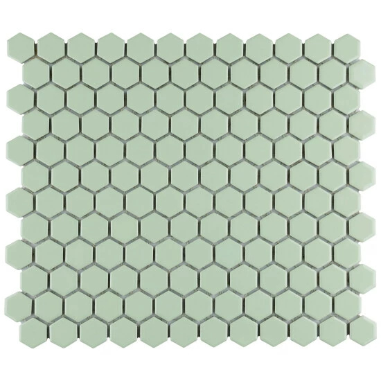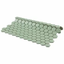 Transform your space into a tribute to retro design with our Metro Hex 1″ Glossy Mint 10-1/4 in. x 11-7/8 in. Porcelain Mosaic Floor and Wall Tile. As a modern deviation from the classic hexagon mosaic, this tile option is a throwback to traditional retro design with a contemporary feel. Glossy mint green hexagons are precisely arranged on an interlocking mesh to create a seamless installation. This minimalistic geometric porcelain mosaic tile is unique yet simplistic enough to integrate into any design, ranging from traditional style renovations to modern home projects. Its impervious and frost-resistant features make this an ideal tile for both indoor and outdoor residential use, including backsplashes, bathrooms, showers and kitchens. Tile is the better choice for your space. This tile is made from natural ingredients, making it a healthy choice as it is free from allergens, VOCs, formaldehyde and PVC.
