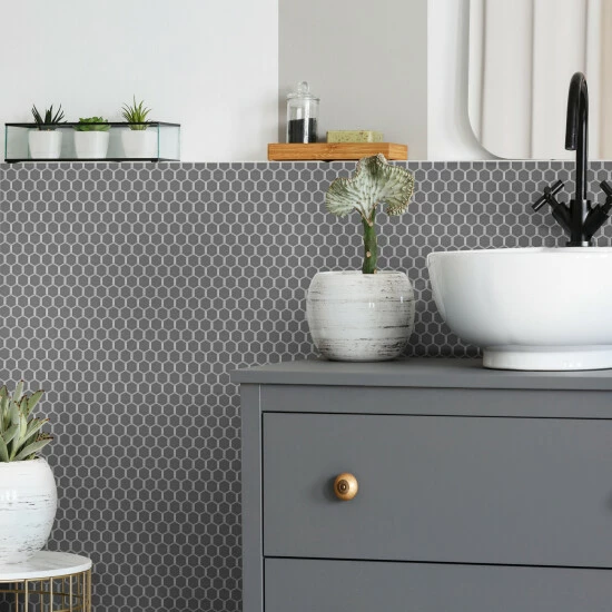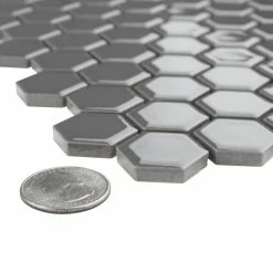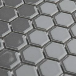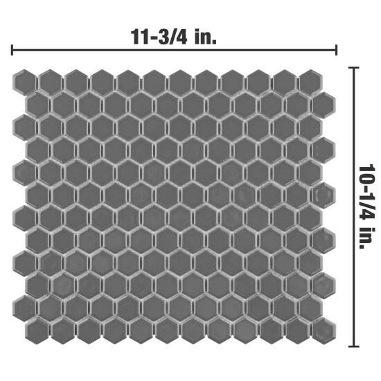 Transform your space into a tribute to retro design with our Metro Hex Glossy Grey 10-1/4 in. x 11-3/4 in. Porcelain Mosaic. As a modern deviation from the classic mosaic, this fresh option is a throwback to traditional retro design with a contemporary feel. Glossy grey hexagons are precisely arranged on an interlocking mesh to create a seamless installation. This minimalistic geometric porcelain mosaic is unique yet simplistic enough to integrate into any design, ranging from traditional style renovations to modern home projects. Its impervious, frost resistant and durable features make this an ideal tile for both residential indoor and outdoor use, including backsplashes, bathrooms, kitchens and patios. Tile is the better choice for your space. This tile is made from natural ingredients, making it a healthy choice as it is free from allergens, VOCs, formaldehyde and PVC.