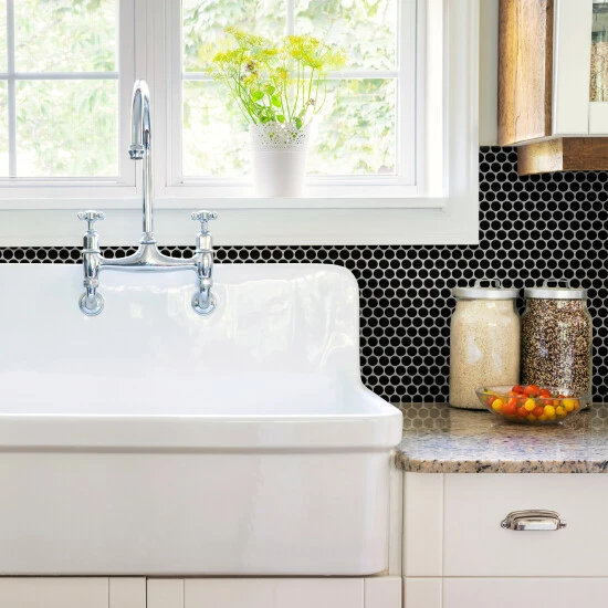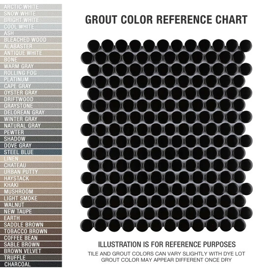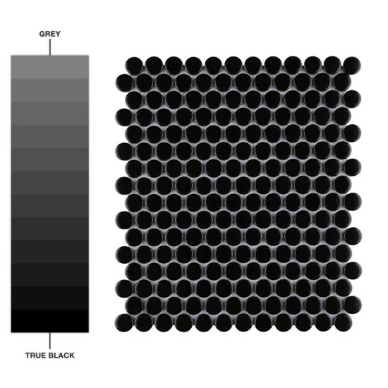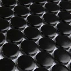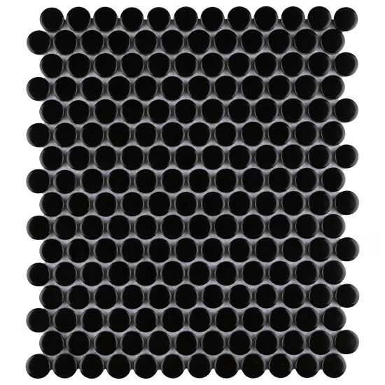 Transform your space into a tribute to retro design with our Metro Penny Matte Satin Black 9-3/4 in. x 11-1/2 in. Porcelain Floor and Wall Mosaic Tile. As a modern deviation from the classic mosaic, this fresh option is a throwback to traditional retro design with a contemporary feel. Matte black penny rounds are arranged on an interlocking mesh to create a seamless installation. This minimalistic geometric porcelain mosaic is unique yet simplistic enough to integrate into any design, ranging from traditional style renovations to modern home projects. Its ADA compliant, impervious and frost resistant features make this an ideal tile for residential indoor and outdoor use, including backsplashes, bathrooms, and kitchens. Tile is the better choice for your space. This tile is made from natural ingredients, making it a healthy choice as it is free from allergens, VOCs, formaldehyde and PVC.