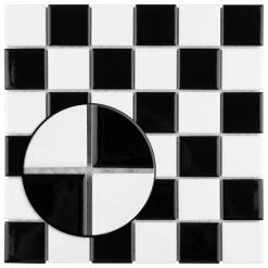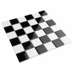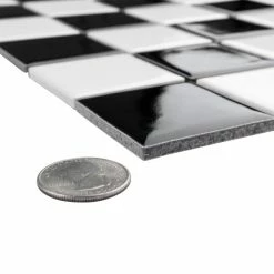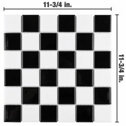 Our Metro Quad Checkerboard Glossy Black/White 11-3/4 in. x 11-3/4 in. Porcelain Floor and Wall Mosaic Tile instantly elevates spaces through a refreshing dose of timeless design. As an innovative twist on the classic mosaic, this floor and wall product is comprised of alternating square shaped chips in white and black with a smooth surface. Glossy squares are arranged on an interlocking mesh to create a unique and seamless checkerboard installation. This minimalistic geometric porcelain mosaic is unique yet simplistic enough to integrate into any design, ranging from traditional style renovations to modern home projects. Its impervious and frost-resistant features make this an ideal tile for indoor and outdoor use, including backsplashes, bathrooms, showers, kitchens, fireplace facades, and floors that get light-duty foot traffic floors. This tile is a perfect choice on its own or paired with other products in the Metro Quad Collection. Tile is the better choice for your space. This tile is made from natural ingredients, making it a healthy choice as it is free from allergens, VOCs, formaldehyde and PVC.