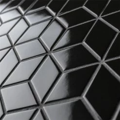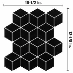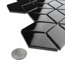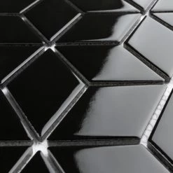 Our Metro Rhombus Glossy Black 10-1/2 in. x 12-1/8 in. Porcelain Mosaic Floor and Wall Tile instantly elevates spaces through a refreshing dose of geometric design. As an innovative twist on the classic mosaic, this product is comprised of diamond shaped chips in black with a smooth surface. Glossy diamonds are arranged on an interlocking mesh to create a seamless installation. This minimalistic geometric porcelain mosaic is unique yet simplistic enough to integrate into any design, ranging from traditional style renovations to modern home projects. Its impervious and frost-resistant features make this an ideal tile for both indoor and outdoor residential use, including backsplashes, bathrooms, showers and kitchens. This tile is a perfect choice on its own or paired with other products in the Metro Rhombus Collection. Tile is the better choice for your space. This tile is made from natural ingredients, making it a healthy choice as it is free from allergens, VOCs, formaldehyde and PVC.