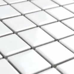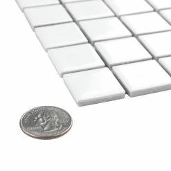 Our Metro Square Glossy White Porcelain Floor and Wall Mosaic brings a Victorian-era aesthetic to any space. Featuring individual square chips with a glossy white surface, this tile offers a crisp, uniformed appearance that is suitable for a variety of design styles. With characteristics of glazed porcelain tile, this mosaic is impervious and frost resistant. These mesh-mounted tiles offer a high durability rating that is great for any interior or exterior space. Tile is the better choice for your space. This tile is made from natural ingredients, making it a healthy choice as it is free from allergens, VOCs, formaldehyde and PVC.
