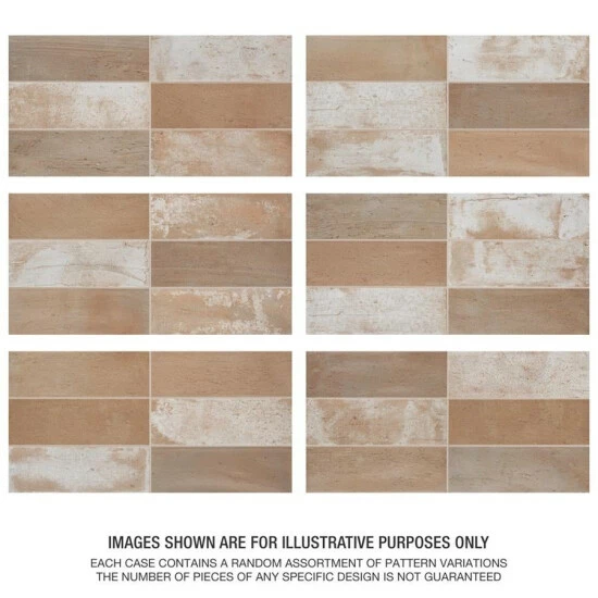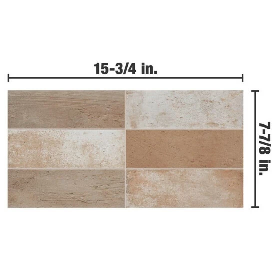 Imported from Spain, our Kings Mud Sand 15-3/4″ x 7-7/8″ Ceramic Wall Tile radiates vintage charm. This wall tile features faded brown, beige, terracotta, and off-white tones with a distressed, slightly textured surface. Inspired by vintage ceramics and the wabi-sabi philosophy, interior architect and furniture designer, Francisco Segarra, designed this collection to explore the possibilities of mud as a creative and decorative element. Using earth tones, varying reliefs, shade variations, and imperfections, this collection generates warm and comfortable interiors. Available in thirty-five print variations that are randomly distributed throughout each case, the variation throughout each tile mimics an authentic aged appearance. Save time and labor spent arranging smaller brick tiles and instead install these durable large porcelain rectangles, which have six smaller brick rectangles separated by scored grout lines. Its glazed feature makes this tile an ideal choice for indoor wall installations including, kitchen backsplashes, bathroom showers and fireplace facades. Tile is the better choice for your space. This tile is made from natural ingredients, making it a healthy choice as it is free from allergens, VOCs, formaldehyde, and PVC.