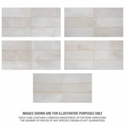 Imported from Spain, our Kings Mud White 15-3/4″ x 7-7/8″ Ceramic Wall Tile radiates vintage charm. This wall tile features faded white tones with a distressed, slightly textured surface. Inspired by vintage ceramics and the wabi-sabi philosophy, interior architect and furniture designer, Francisco Segarra, designed this collection to explore the possibilities of mud as a creative and decorative element. Using earth tones, varying reliefs, shade variations, and imperfections, this collection generates warm and comfortable interiors. Available in thirty-five print variations that are randomly distributed throughout each case, the variation throughout each tile mimics an authentic aged appearance. Save time and labor spent arranging smaller brick tiles and instead install these durable large porcelain rectangles, which have six smaller brick rectangles separated by scored grout lines. Its glazed feature makes this tile an ideal choice for indoor wall installations including, kitchen backsplashes, bathroom showers and fireplace facades. Tile is the better choice for your space. This tile is made from natural ingredients, making it a healthy choice as it is free from allergens, VOCs, formaldehyde, and PVC.