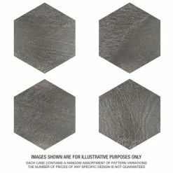 Capturing the organic appeal of natural stone in a durable porcelain material, our Nagpur Grand Hex Grafito 19″ x 22″ Porcelain Floor and Wall Tile and Wall Tile brings the irreplaceable beauty of nature into any living space. This large format hexagon tile features delicate veining and natural mineral-like pattern variations in faded dark taupe hues, replicating the appearance of aged stone. This unique porcelain tile offers decorative, contemporary beauty through a realistic textured finish and scuffs and spots that are ideal for bringing an interior space to life. This trendsetting display of stone-look design is visually appealing and versatile and blends beautifully with a range of styles from vintage industrial to modern day. Its impervious, frost-resistant, and durable features make this an ideal choice for both commercial and residential indoor and outdoor installations including, kitchens, bathrooms, backsplashes, showers, hallways, entryways, patios, and fireplace facades. Tile is the better choice for your space. This tile is made from natural ingredients, making it a healthy choice as it is free from allergens, VOCs, formaldehyde, and PVC.