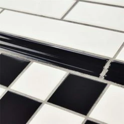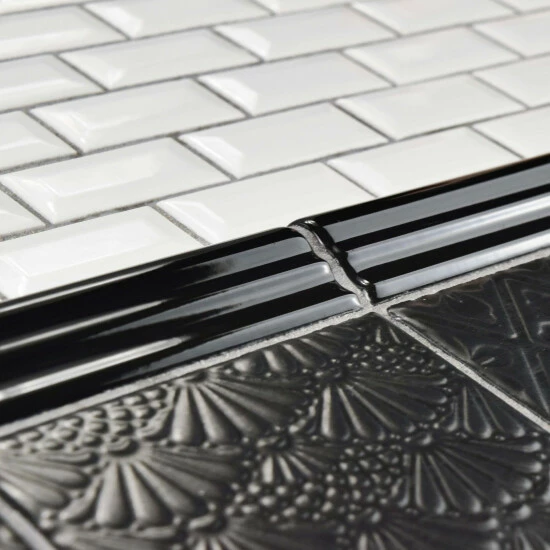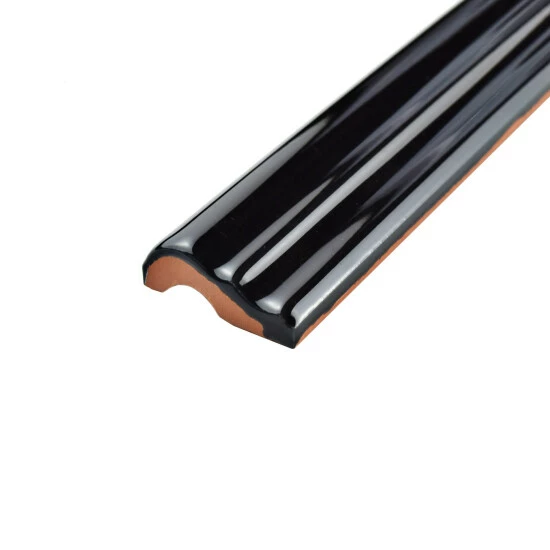The Nero Brillo Zen 1-1/4″ x 7-7/8″ Ceramic Moldura Wall Trim Tile is a modern trim piece great for separating two looks. These contemporary tiles feature an uneven rounded surface for added dimension. This black trim features a high sheen finish for a crisp, clean design. Pair this trim with many of our other products to complete any modern look.