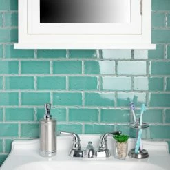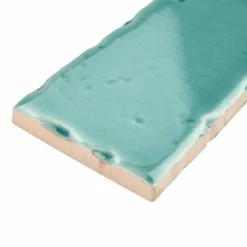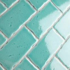 Capture a handcrafted, artisan appearance that is inspired by twentieth-century Spain with our Novecento Subway Aguamarina 2-1/2 in. x 5-1/8 in. Ceramic Wall Tile. With an aquamarine crackle watercolor glaze, this rustic tile offers a glossy, reflective finish for a glass-like appearance. Asymmetrical edges and a smooth surface with varying indentations throughout this glossy tile fashion a handmade appearance. Derived from the classic subway format, this tile is tastefully smaller for a distinctive, unexpected design element. This old-world tile is great as a cohesive look or paired with other items in the Novecento program. Intended for interior wall use, this tile is an excellent selection to accent your backsplash, shower wall, fireplace facade or accent wall. It is necessary that you seal this tile before grouting to prevent the absorption of staining agents over time. Tile is the better choice for your space. This tile is made from natural ingredients, making it a healthy choice as it is free from allergens, VOCs, formaldehyde and PVC.