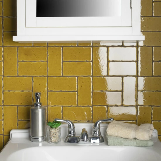 Capture a handcrafted, artisan appearance that is inspired by twentieth-century Spain with our Novecento Subway Camel 2-1/2 in. x 5-1/8 in. Ceramic Wall Tile. With a harvest yellow crackle watercolor glaze, this rustic tile offers a glossy, reflective finish for a glass-like appearance. Asymmetrical edges and a smooth surface with varying indentations throughout this glossy tile fashion a handmade appearance. Derived from the classic subway format, this tile is tastefully smaller for a distinctive, unexpected design element. This old-world tile is great as a cohesive look or paired with other items in the Novecento program. Intended for interior wall use, this tile is an excellent selection to accent your backsplash, shower wall, fireplace facade or accent wall. It is necessary that you seal this tile before grouting to prevent the absorption of staining agents over time. Tile is the better choice for your space. This tile is made from natural ingredients, making it a healthy choice as it is free from allergens, VOCs, formaldehyde and PVC.