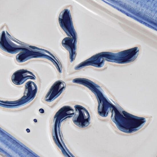 Capture a handcrafted, artisan appearance that is inspired by twentieth-century Spain with our Novecento Friso Evoli Cobalto 5-1/8 in. x 5-1/8 in. Ceramic Wall Trim Tile. Set on a milky hand-painted white glaze, the center floral design is sunken into the surface of the trim and has a crackle finish, giving it a dimensional feel. Spots of the red ceramic peek through the bisque glaze on the elevated designs, creating the authentic artisan look. The cobalt color seen throughout has a watercolor look that is hand-painted offering a great accent for your wall installation. Due to a partially handmade process, each tile could offer slight size variation. This glossy old-world tile is great for accenting other items in the Novecento program as separation between two tiles or as a finishing edge. Intended for interior wall use, this tile is an excellent selection to accent your backsplash, shower wall, fireplace facade or accent wall. It is necessary that you seal this tile before grouting to prevent the absorption of staining agents over time. Tile is the better choice for your space. This tile is made from natural ingredients, making it a healthy choice as it is free from allergens, VOCs, formaldehyde and PVC.