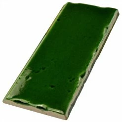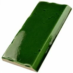 Capture a handcrafted, artisan appearance that is inspired by twentieth-century Spain with our Novecento Zocalo Verdin 2-1/2 in. x 5-1/8 in. Ceramic Wall Trim Tile. With a forest green watercolor crackle glaze, this rustic trim piece has a slanted top edge intended to act as a finishing piece for your wall installation. Asymmetrical edges and a smooth surface with varying indentations throughout this glossy trim piece fashion a handmade appearance. This old-world trim is an excellent choice to accent your backsplash, shower wall, fireplace facade or accent wall with other items in the Novecento program. It is necessary that you seal this tile before grouting to prevent the absorption of staining agents over time. Tile is the better choice for your space. This tile is made from natural ingredients, making it a healthy choice as it is free from allergens, VOCs, formaldehyde and PVC.
