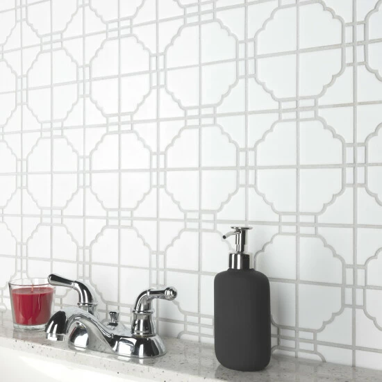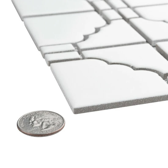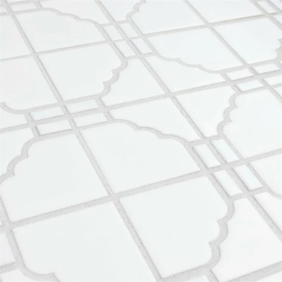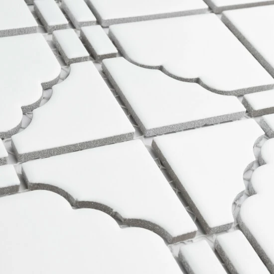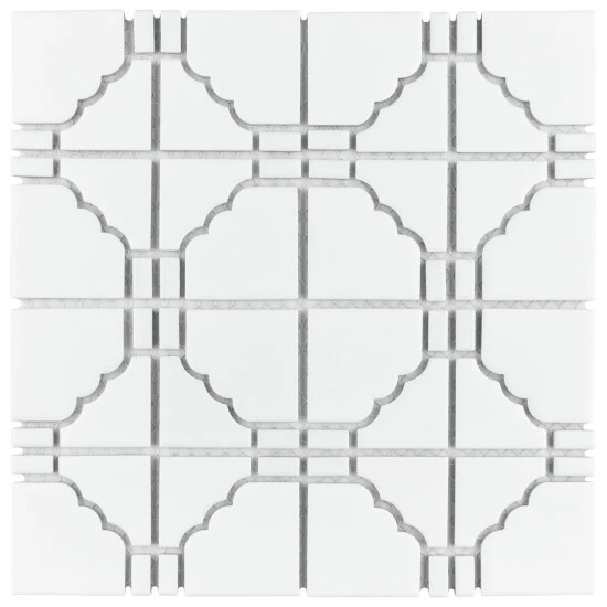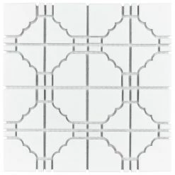 The Osaka Matte White 12 in. x 12 in. Porcelain Mosaic Tile features a unique mosaic composition as well as a beautiful uniform matte finish. This glazed white tile is suitable for any wall or backsplash installation or light-traffic residential floors. Use it in its natural format as a field tile or cut it into strips to accent other tiles.