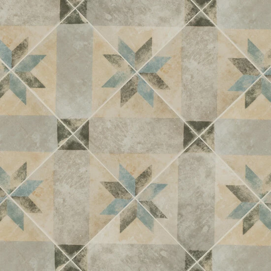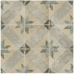 The Pompei Star Blue 9-3/4 in. x 9-3/4 in. Porcelain Floor and Wall Tile has a rustic-inspired look. As a patterned throwback to European artisan tile work, the varying toasted wheat tones are all set on a white base glaze. The muted blue and white accents offer a worn, aged look. This durable choice for your floor or wall installation can be used to form an eye-catching repeating pattern that will add character to any space. Tile is the better choice for your space. This tile is made from natural ingredients, making it a healthy choice as it is free from allergens, VOCs, formaldehyde and PVC.