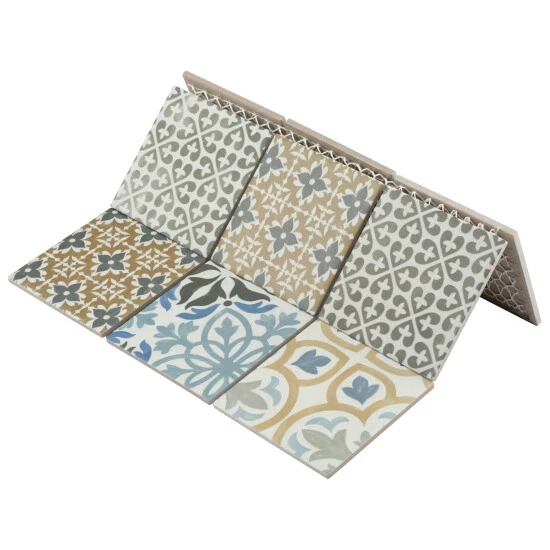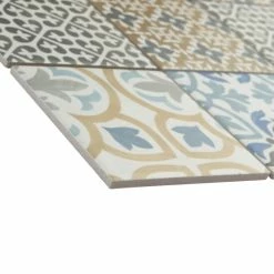 The Porto 11-3/4 in. x 11-3/4 in. Porcelain Mosaic Tile ties together the intricate look of individual tiles with the easy installation of a mosaic. This patchwork mosaic features four varying old-world designs that have white and goldenrod accents with muted shades of blue. The multi-patterned tile radiates vintage charm offers a satin finish that adds extra character. Its impervious and frost-resistant features make this an ideal tile for both indoor and outdoor residential and commercial use. Tile is the better choice for your space. This tile is made from natural ingredients, making it a healthy choice as it is free from allergens, VOCs, formaldehyde and PVC.