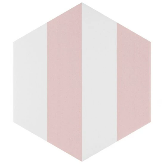 Our Porto Capri Hex Rose 8-5/8 in. x 9-7/8 in. Porcelain Floor and Wall Tile features alternating off-white and soft pink lines that extend across the tile. This mesmerizing tile pattern is sure to liven up your space and give it a modern spin. Its geometric shape is unique yet simple enough to integrate into any design, ranging from traditional style renovations to modern home projects. The matte glazed surface offers a sleek look that adds extra character to this unique artistic tile. Its impervious, frost resistant, and durable features make it an ideal choice for both commercial and residential indoor and outdoor installations including, kitchens, bathrooms, backsplashes, showers, hallways, entryways, patios, and fireplace facades. This tile is a perfect choice on its own or coordinated with other products in the Porto series. Tile is the better choice for your space. This tile is made from natural ingredients, making it a healthy choice as it is free from allergens, VOCs, formaldehyde, and PVC.