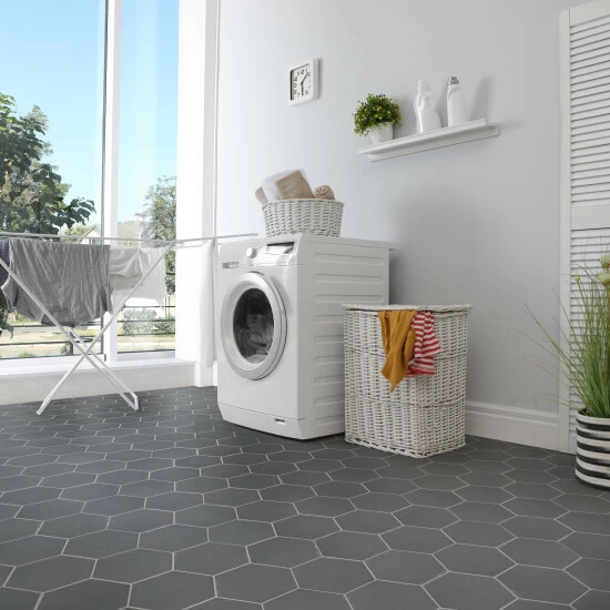 Replicating a wood look, our Retro Mini Hex Nero Porcelain Floor and Wall Tile features a slightly textured, glossy finish, making it a great choice for your space. With its impervious, frost-resistant features, this black hexagon tile is an ideal selection for both indoor and outdoor residential installations, including bathrooms, backsplashes, showers, hallways and fireplace facades. This tile is a perfect choice on its own or paired with other products in the Retro Mini Hex Collection. Tile is the better choice for your space. This tile is made from natural ingredients, making it a healthy choice as it is free from allergens, VOCs, formaldehyde, and PVC.