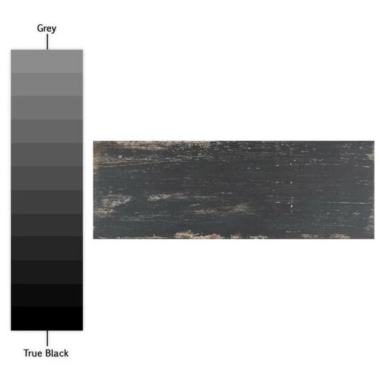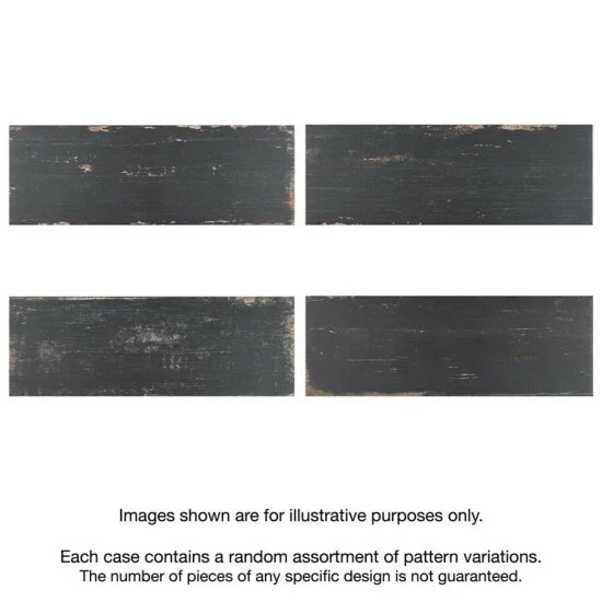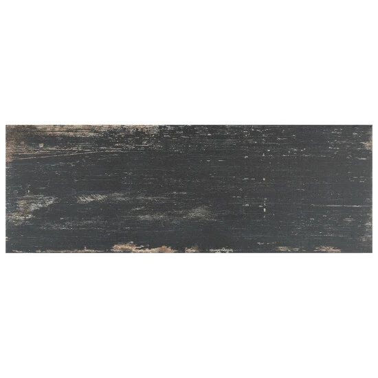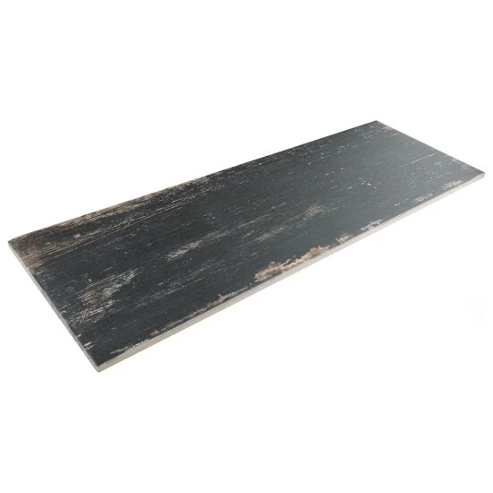 The Retro Nero 8-1/4 in. x 23-1/2 in. Porcelain Floor and Wall Tile is a breathtaking addition to our collection of wood-look tiles. Crafted in Spain, the soot black glaze features a meticulously detailed grain accented in shades of tan. To add further contrast and depth, this tile has subtle bumps and grooves that echo the texture of real wood. The finishing touch on this large plank is the imitations of scuffs and spots, which gives this tile an antiquated appearance reminiscent of distressed painted wood. This extruded porcelain tile has 14 different print variations for a one-of-a-kind look that can only be achieved through the partially handmade process. You have the ability to create endless design possibilities when you pair this with other products in the Retro series. This impervious, matte tile will look great in all indoor and outdoor locations, including walls, floors, and patios.