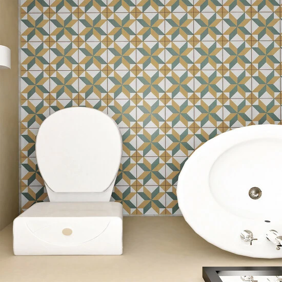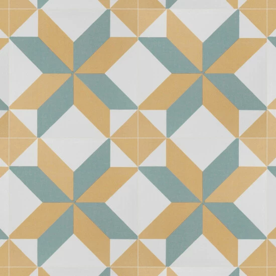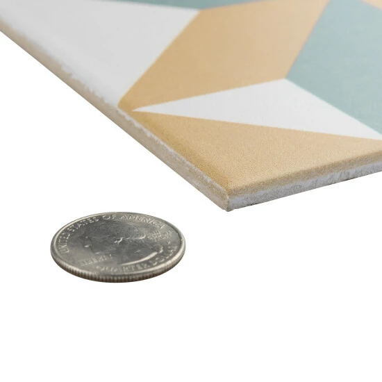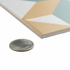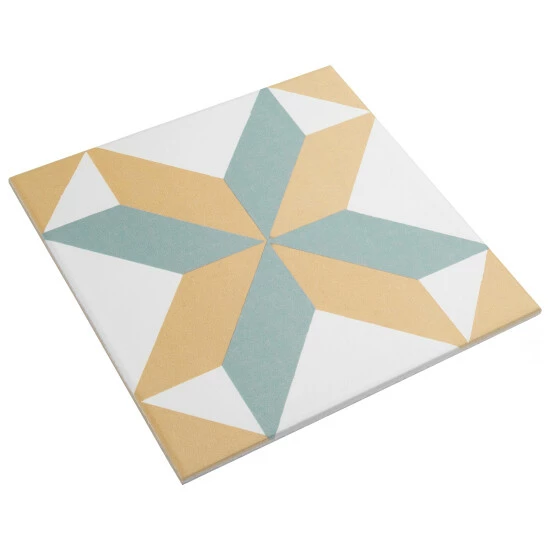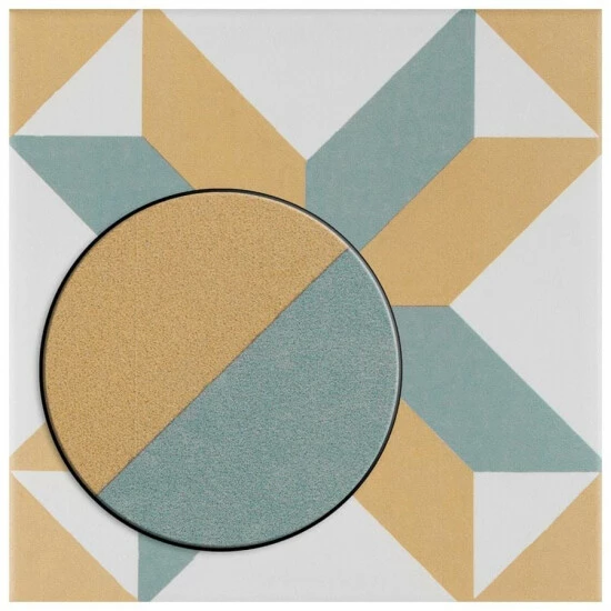 Our Revival Pattern 7-3/4 in. x 7-3/4 in. Ceramic Floor and Wall Tile transforms any space into a work of art through geometric and linear patterns that when laid out, intertwine to create captivating three-dimensional motifs. Composed of rich detail and a smooth surface texture, this floor and wall tile features varying shades of faded orange and dark mint green set on an off-white base glaze for additional visual dimension. Its durable and frost-resistant features make this an ideal choice for indoor and outdoor installations including kitchens, bathrooms, backsplashes, showers, entryways, patios and fireplace facades. This ceramic tile is a perfect choice on its own or paired with other product in the Revival Collection. Tile is the better choice for your space. This tile is made from natural ingredients, making it a healthy choice as it is free from allergens, VOCs, formaldehyde and PVC.