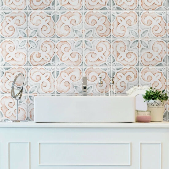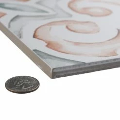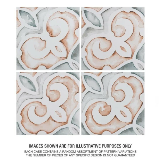 Inspired by traditional hand-painted Mediterranean tiles, our Saint Germain Chaud Deco Simone Porcelain Floor and Wall Tile offers vibrant artisanal beauty. This tile features old-world floral patterns in sage green, ochre orange and grey watercolor inspired tones that are set amongst an off-white base glaze. Richly detailed with a smooth, matte finish, this on-trend porcelain tile offers charming decorative appeal that can blend into virtually any design theme, ranging from contemporary projects to traditional installations. Its impervious, frost-resistant, and durable features make this an ideal choice for both commercial and residentials indoor and outdoor installations including kitchens, bathrooms, backsplashes, showers, entryways, and patios. This tile is a perfect choice on its own or coordinated with other products in the Saint Germain series. Tile is the better choice for your space. This tile is made from natural ingredients, making it a healthy choice as it is free from allergens, VOCs, formaldehyde, and PVC.