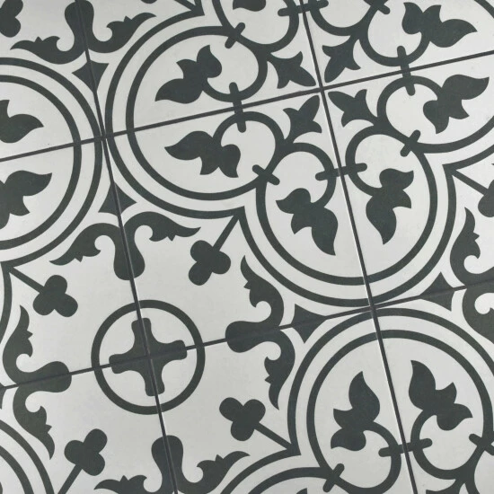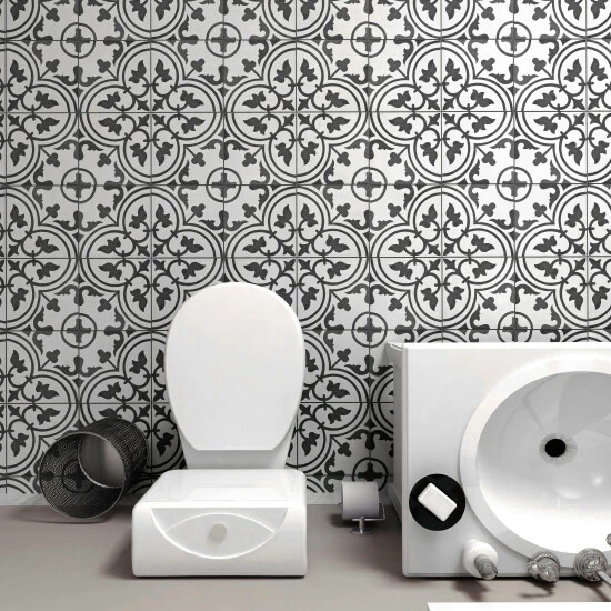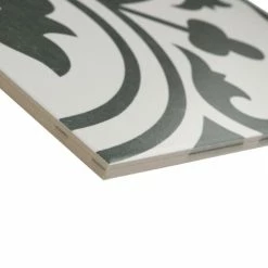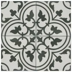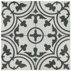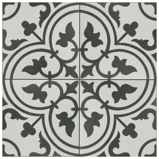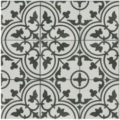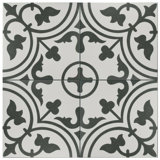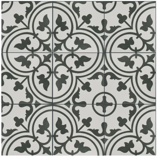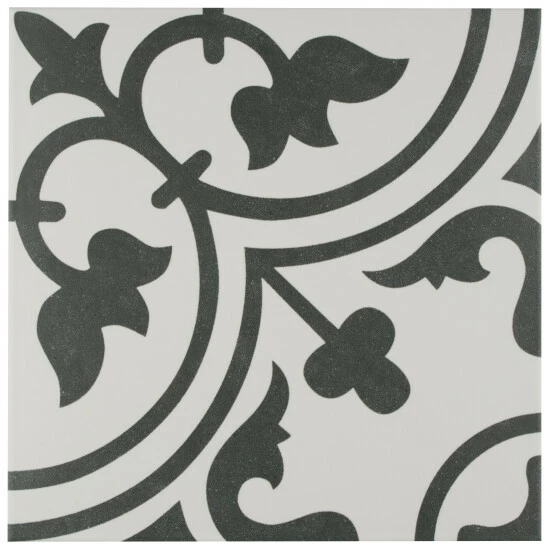 As the original encaustic-look porcelain tile that started the patterned tile trend, our Arte White Porcelain Floor and Wall Tile draws inspiration from artisan cement tiles. Crafted in Spain, this porcelain tile features a large floral old-world pattern in rich charcoal black that frames dueling arcs in the center, offering subtle contrast and dimension to the decoration. Set on the highest-quality solid snow white base glaze, the contrasting design features a weathered, speckled look, replicating the beauty of its cement muse. The floral, geometric pattern blends into virtually any design theme, making this an exceptional product for modern installations and historic renovations. Its impervious and frost-resistant features make it an ideal choice for both indoor and outdoor residential installations including kitchens, bathrooms, showers, entryways and patios. Tile is the better choice for your space. This tile is made from natural ingredients, making it a healthy choice as it is free from allergens, VOCs, formaldehyde and PVC.