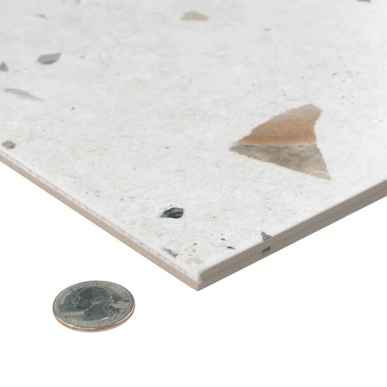 Replicating a terrazzo look, our Sonar White Porcelain Floor and Wall Tile features a mixed textured finish, making it a great choice for your space. With its impervious, frost-resistant features, this white square tile is an ideal selection for both indoor and outdoor commercial and residential installations, including kitchens, bathrooms, backsplashes, showers, hallways, entryways, patios and fireplace facades. This tile is a perfect choice on its own or paired with other products in the Sonar Collection. Tile is the better choice for your space. This tile is made from natural ingredients, making it a healthy choice as it is free from allergens, VOCs, formaldehyde, and PVC.