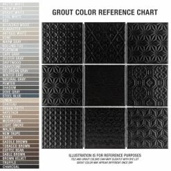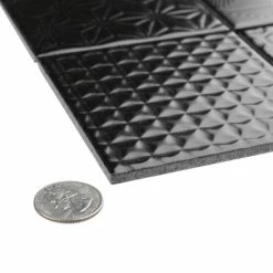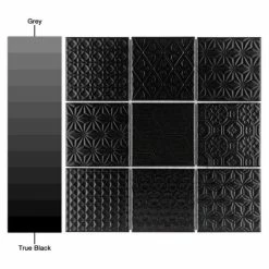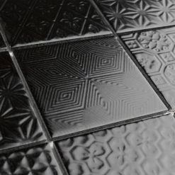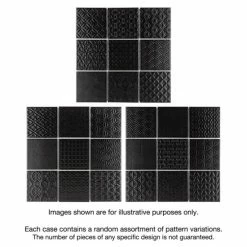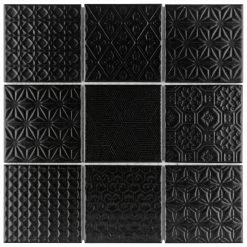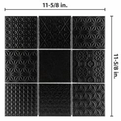 A patchwork blend of rustic and contemporary elements create an astonishing, distinctive mosaic in the Spirit Black 11-5/8 in. x 11-5/8 in. x 6 mm Porcelain Mosaic Tile. Nine mesh-mounted tiles with fluctuating dimensional, raised patterns bring definition to any space. The satin finish helps light reflect from the subtle relief throughout this mosaic, offering additional layers of dimension. Use this porcelain tile in most light-duty residential installations.