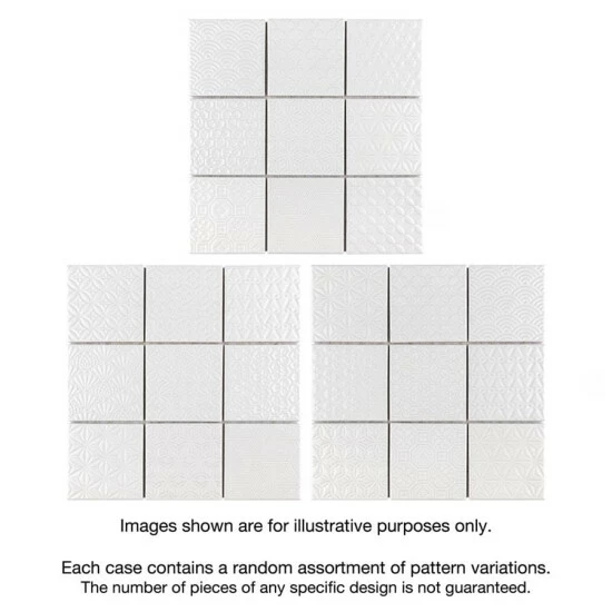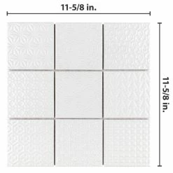- 11.63 in. width x 11.63 in. length x 0.25 in. mm thick mesh-mounted mosaic. 3.88 in. W x 3.88 in. L pieces