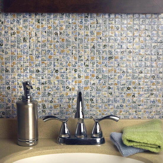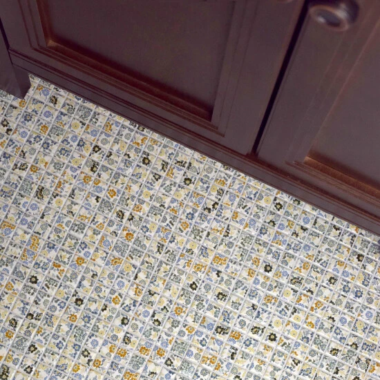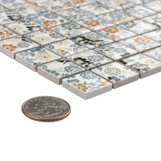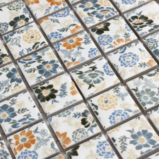 Bring a modern aesthetic into your living space with the Spring Flower 12 in. x 12 in. x 5 mm Porcelain Mosaic Tile. This unique floral-patterned mosaic tile has a glazed, medium-shine surface and incorporates square tiles to provide a contemporary look. The strong mesh backing material makes for easy installation and the durable porcelain material and impervious water absorption rating make this mosaic a great choice for indoor and outdoor applications. Tile is the better choice for your space. This tile is made from natural ingredients, making it a healthy choice as it is free from allergens, VOCs, formaldehyde and PVC.