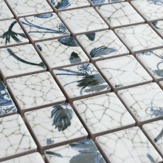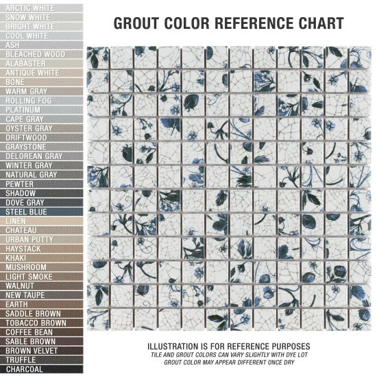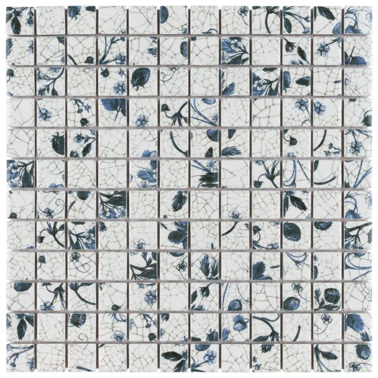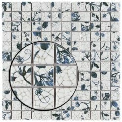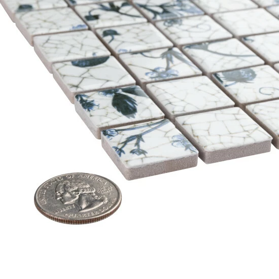 Bring a classic aesthetic into your living space with the Strawberry Fields 11-5/8 in. x 11-5/8 in. x 6 mm Porcelain Mosaic Tile. This unique floral-patterned mosaic tile has a glazed, medium-shine surface and incorporates a Chinoiserie-type design. The strong mesh backing material makes for easy installation and the durable porcelain material and impervious water absorption rating make this mosaic a great choice for indoor and outdoor applications. Tile is the better choice for your space. This tile is made from natural ingredients, making it a healthy choice as it is free from allergens, VOCs, formaldehyde and PVC.