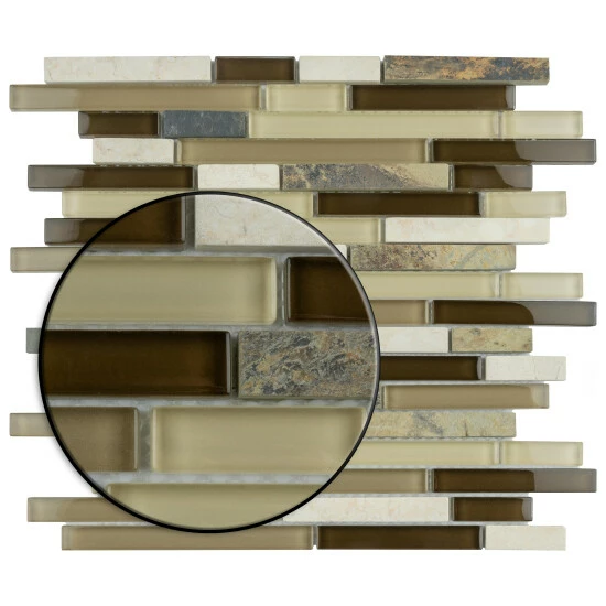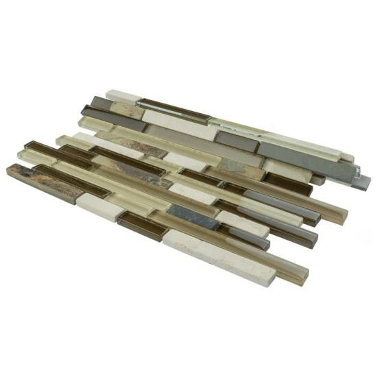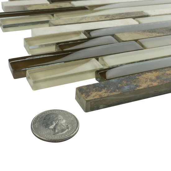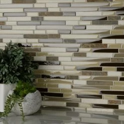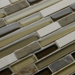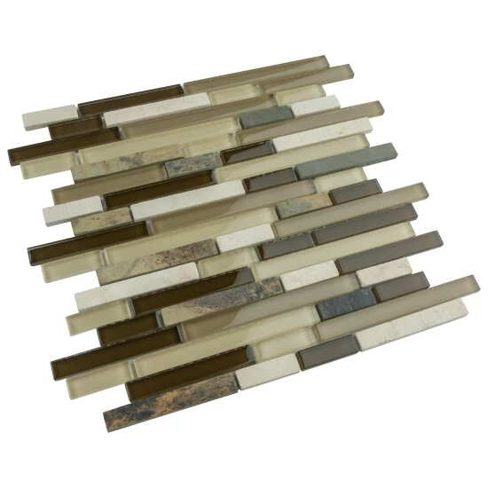 Β Featuring a rustic, artsy design with glass and stone pieces, our Tessera Piano Nassau 11-5/8 in. x 11-3/4 in. Glass and Stone Mosaic is the perfect focal point tile or decorative accent piece. This wall only mosaic features a beautiful mix of smooth and textured glass chips in earthy tones accented by tumbled natural stone for a nature-centric appearance. The piano-style format lends an air of sophistication and creates a unique multi-dimensional effect without being too overbearing. Tile is the better choice for your space. This tile is made from natural ingredients, making it a healthy choice as it is free from allergens, VOCs, formaldehyde and PVC.