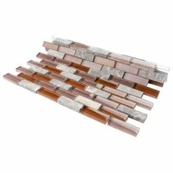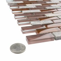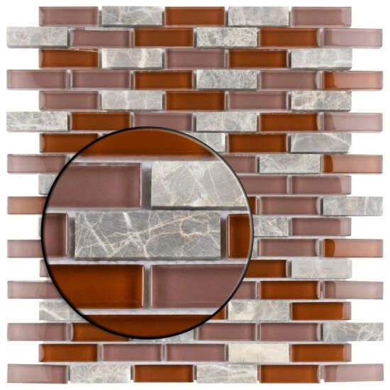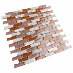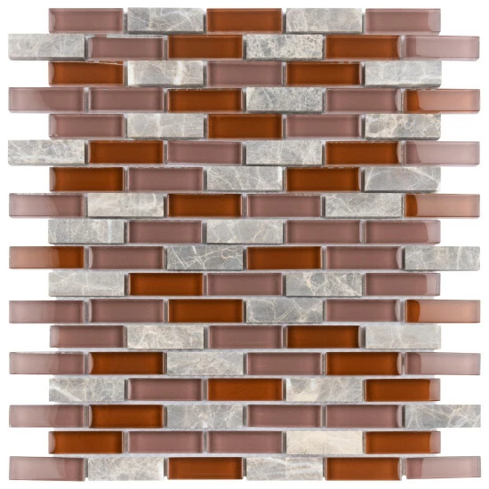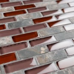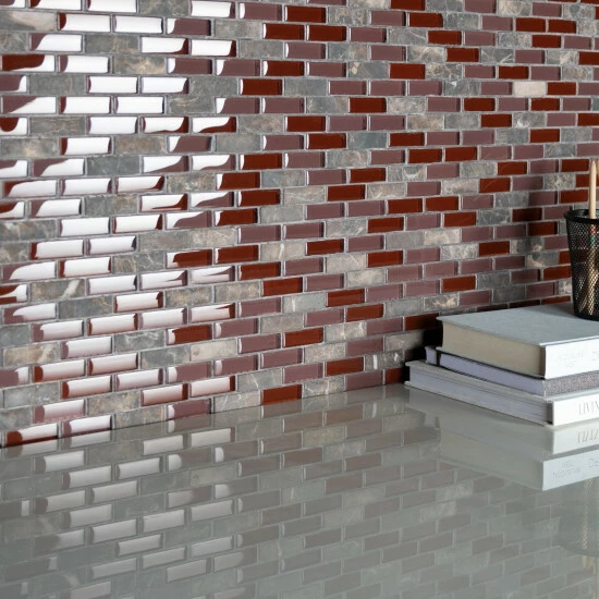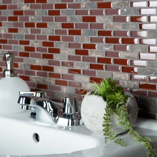 Featuring a rustic, artsy design with glass and stone pieces, our Tessera Subway Bordeaux 10-3/4 in. x 11-3/4 in. Glass and Stone Mosaic is the perfect focal point tile or decorative accent piece. This wall only mosaic features a beautiful mix of smooth and textured glass chips in dark red tones accented by tumbled natural stone for an elegant appearance. The piano-style format lends an air of sophistication and creates a unique multi-dimensional effect without being too overbearing. Tile is the better choice for your space. This tile is made from natural ingredients, making it a healthy choice as it is free from allergens, VOCs, formaldehyde and PVC.