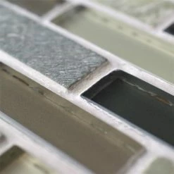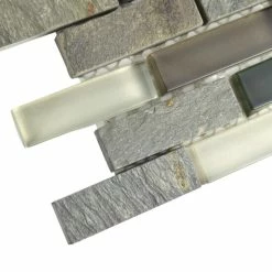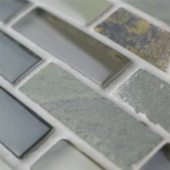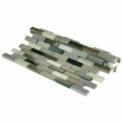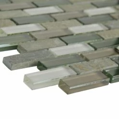 Featuring a rustic, artsy design with glass and stone pieces, our Tessera Subway Stonehenge Glass and Stone Mosaic is the perfect focal point tile or decorative accent piece. This wall only mosaic features a beautiful mix of smooth and textured glass chips in earthy green and brown tones accented by tumbled natural stone for an elegant appearance. The piano-style format lends an air of sophistication and creates a unique multi-dimensional effect without being too overbearing. Tile is the better choice for your space. This tile is made from natural ingredients, making it a healthy choice as it is free from allergens, VOCs, formaldehyde, and PVC.