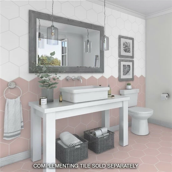 Lending a unique touch of color, our Textile Basic Hex Rose 8-5/8 in. x 9-7/8 in. Porcelain Floor and Wall Tile instantly elevates spaces through a refreshing dose of vivid geometric design. The light pink glaze is uniformly applied to create a striking matte surface that offers eye-catching beauty. Given the versatility of its format, this hexagon tile is unique yet simplistic enough to integrate into any design, ranging from traditional style renovations to modern home projects. Its impervious, frost resistant and durable features make this an ideal tile for both commercial and residential indoor and outdoor use, including backsplashes, bathrooms, kitchens and patios. This tile is a perfect choice on its own or paired with other products in the Textile Collection. Tile is the better choice for your space. This tile is made from natural ingredients, making it a healthy choice as it is free from allergens, VOCs, formaldehyde and PVC.