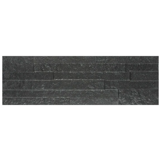 Through the realistic replication of natural stone, our Tikal Black Ceramic Wall Tile transforms any space into a functional and stylish extension of nature. This enlarged rectangular wall tile features an offset stacked stone pattern in charcoal black tones. With a textured, three-dimensional surface, this unique ceramic panel offers organic, rustic beauty. Available in 15 print variations that are randomly distributed throughout each case, the variation throughout each tile mimics an authentic stone appearance. Its impervious and frost-proof features make it an ideal choice for indoor and outdoor wall installations including kitchen backsplashes, shower walls, and fireplace facades. Tile is the better choice for your space. This tile is made from natural ingredients, making it a healthy choice as it is free from allergens, VOCs, formaldehyde, and PVC.