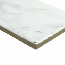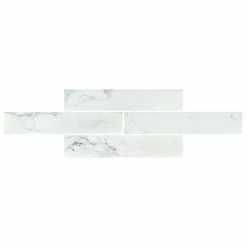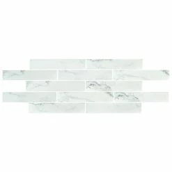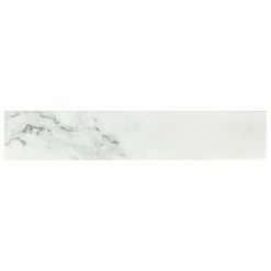 Emulating the timeless beauty of marble, the Merola Tile Tinos White 3-1/8 in. x 17-3/8 in. Porcelain Floor and Wall Tile captures stunning artistry dating back to Ancient Rome. Set on a matte white glaze, this marbleized porcelain tile offers an everlasting look to accent your floor or wall installation. Light grey striation patterns flow throughout to add authenticity to your installation. With a traditional plank format and smooth, even surface, this tile is perfect for creating a sophisticated feel for any setting. There is variation in the veining patterns found throughout each tile, offering up to 18 unique variations. Pair this tile with the Tinos Black to create your own elegant installation. Tile is the better choice for your space. This tile is made from natural ingredients, making it a healthy choice as it is free from allergens, VOCs, formaldehyde and PVC. Β