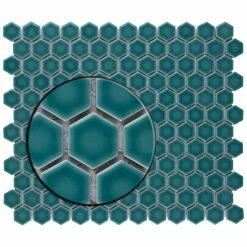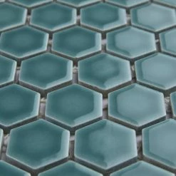 Lending a unique touch of color, our Tribeca Hex 1 in. Jade 10-1/4 in. x 11-7/8 in. Porcelain Mosaic Floor and Wall Tile instantly elevates spaces through a refreshing dose of vivid geometric design. As an innovative twist on the classic hexagon, this mosaic is comprised of hexagonal chips in jade green tones with a smooth surface. Glossy hexagons are arranged on an interlocking mesh to create a seamless installation. This minimalistic geometric porcelain mosaic is unique yet simplistic enough to integrate into any design, ranging from traditional style renovations to modern home projects. Its impervious and frost-resistant features make this an ideal tile for both indoor and outdoor residential use, including backsplashes, bathrooms, showers and kitchens. This tile is a perfect choice on its own or paired with other products in the Tribeca Hex Mosaic Collection. Tile is the better choice for your space. This tile is made from natural ingredients, making it a healthy choice as it is free from allergens, VOCs, formaldehyde and PVC.