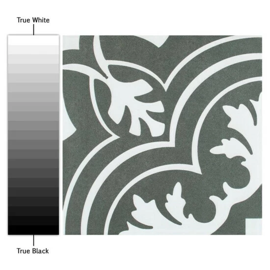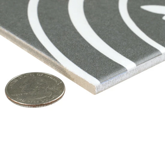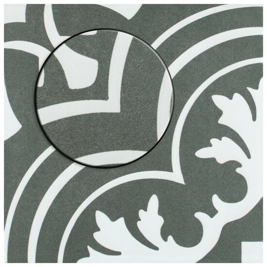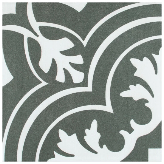 Β Inspired by artisan cement tiles, our Twenties Classic 7-3/4 in. x 7-3/4 in. Ceramic Floor and Wall Tile captures the look of authentic encaustic tiles with a versatile ceramic body. This square tile features floral old-world patterns in snow white tones that are accented by simplistic arcs. Set on a charcoal black base glaze, the contrasting design features a weathered, speckled look, replicating the beauty of Spanish design and offering a unique blend of old-world style and modern appeal. This visually rich floor and wall tile can blend into virtually any design theme, ranging from contemporary projects to traditional installations. Its durable and frost-resistant features make this an ideal choice for indoor and outdoor installations including kitchens, bathrooms, backsplashes, showers, entryways, patios and fireplace facades. It is a perfect choice on its own or paired with other product in the Twenties Collection. Tile is the better choice for your space. This tile is made from natural ingredients, making it a healthy choice as it is free from allergens, VOCs, formaldehyde and PVC.