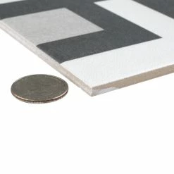Inspired by artisan cement tiles, our Twenties Corner 7-3/4 in. x 7-3/4 in. Ceramic Floor and Wall Tile captures the look of authentic encaustic tiles with a versatile ceramic body. This square tile features geometric patterns in charcoal black and ash grey tones. Set on a snow white base glaze, the contrasting design features a weathered, speckled look, replicating the beauty of Spanish design and offering a unique blend of old-world style and modern appeal. This visually rich floor and wall tile can blend into virtually any design theme, ranging from contemporary projects to traditional installations. Its durable and frost-resistant features make this an ideal choice for indoor and outdoor installations including kitchens, bathrooms, backsplashes, showers, entryways, patios and fireplace facades. It is a perfect choice on its own or paired with other product in the Twenties Collection. Tile is the better choice for your space. This tile is made from natural ingredients, making it a healthy choice as it is free from allergens, VOCs, formaldehyde and PVC.