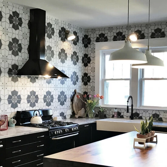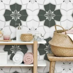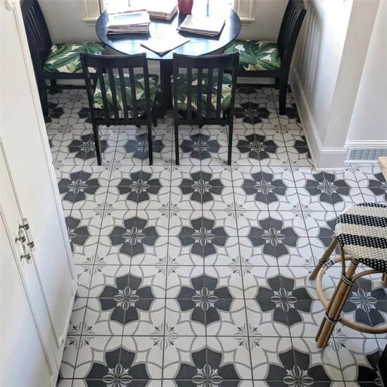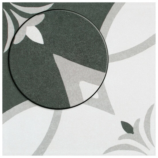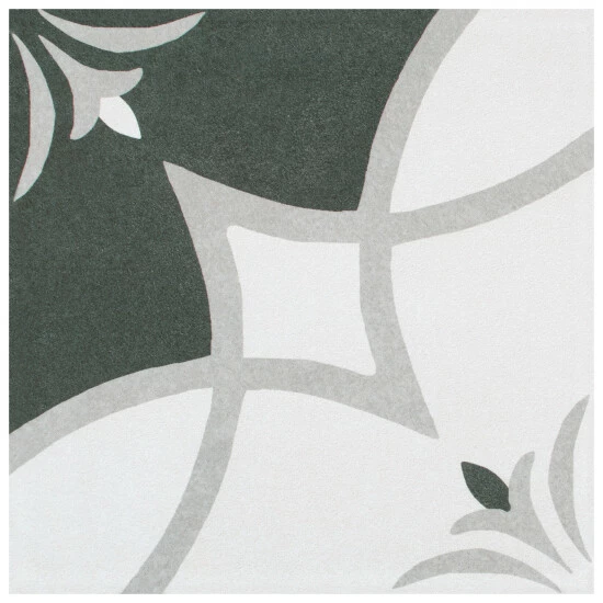 Inspired by artisan cement tiles, our Twenties Crest 7-3/4 in. x 7-3/4 in. Ceramic Floor and Wall Tile captures the look of authentic encaustic tiles with a versatile ceramic body. This square tile features floral old-world patterns in charcoal black and ash grey tones. Set on a snow white base glaze, the contrasting design features a weathered, speckled look, replicating the beauty of Spanish design and offering a unique blend of old-world style and modern appeal. This visually rich floor and wall tile can blend into virtually any design theme, ranging from contemporary projects to traditional installations. Its durable and frost-resistant features make this an ideal choice for indoor and outdoor installations including kitchens, bathrooms, backsplashes, showers, entryways, patios and fireplace facades. It is a perfect choice on its own or paired with other product in the Twenties Collection. Tile is the better choice for your space. This tile is made from natural ingredients, making it a healthy choice as it is free from allergens, VOCs, formaldehyde and PVC.Β