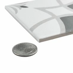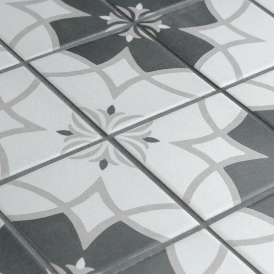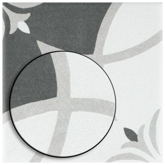 Inspired by artisan cement tiles, our Twenties Crest Mini 4 in. x 4 in. Ceramic Floor and Wall Tile captures the look of authentic encaustic tiles with a versatile ceramic body. Inspired by our Twenties Crest 7-3/4 in. x7-3/4 in. Ceramic Floor and Wall Tile, this smaller version features floral old-world patterns in charcoal black and ash grey tones. Set on a snow white base glaze, the contrasting design features a weathered, speckled look, replicating the beauty of Spanish design and offering a unique blend of old-world style and modern appeal. This visually rich floor and wall tile can blend into virtually any design theme, ranging from contemporary projects to traditional installations. Its durable and frost-resistant features make this an ideal choice for indoor and outdoor installations including kitchens, bathrooms, backsplashes, showers, entryways, patios and fireplace facades. It is a perfect choice on its own or paired with other product in the Twenties Mini Collection. Tile is the better choice for your space. This tile is made from natural ingredients, making it a healthy choice as it is free from allergens, VOCs, formaldehyde and PVC.