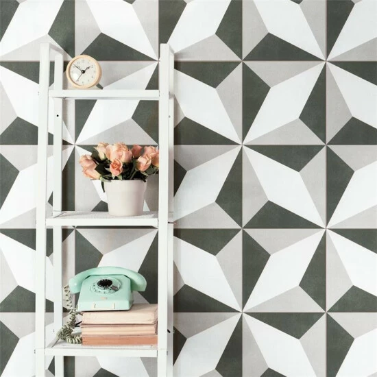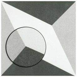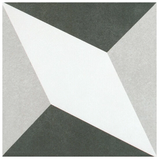Inspired by artisan cement tiles, our Twenties Diamond 7-3/4 in. x 7-3/4 in. Ceramic Floor and Wall Tile captures the look of authentic encaustic tiles with a versatile ceramic body. This square tile features geometric patterns in charcoal black and ash grey tones. Set on a snow white base glaze, the contrasting design features a weathered, speckled look, replicating the beauty of Spanish design and offering a unique blend of old-world style and modern appeal. This visually rich floor and wall tile can blend into virtually any design theme, ranging from contemporary projects to traditional installations. Its durable and frost-resistant features make this an ideal choice for indoor and outdoor installations including kitchens, bathrooms, backsplashes, showers, entryways, patios and fireplace facades. It is a perfect choice on its own or paired with other product in the Twenties Collection. Tile is the better choice for your space. This tile is made from natural ingredients, making it a healthy choice as it is free from allergens, VOCs, formaldehyde and PVC.
