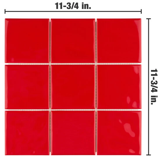 An enriched version of standard subway tile, our Twist Square Red Cherry 11-3/4 in. x 11-3/4 in. Ceramic Mosaic Wall Tile has the allure of classic style, but with a refreshingly modern twist. With slight undulation and a smooth glossy finish, this tile offers an appearance that is retro, futuristic and timeless all in one. It is subtle enough to seamlessly fit alongside various designs, while still interesting enough to stand out. This tile is tastefully smaller for a distinctive, unexpected element that will fit just about any style and space.Β These ceramic square pieces are arranged on an interlocking mesh backing in order to provide convenient installation. If desired, pieces may be removed and installed individually.Β It is great as a cohesive look or paired with other products in the Twist Collection. Intended for interior wall use, this tile is an excellent selection for backsplashes, fireplace facades and accent walls. Tile is the better choice for your space. This tile is made from natural ingredients, making it a healthy choice as it is free from allergens, VOCs, formaldehyde and PVC.Β