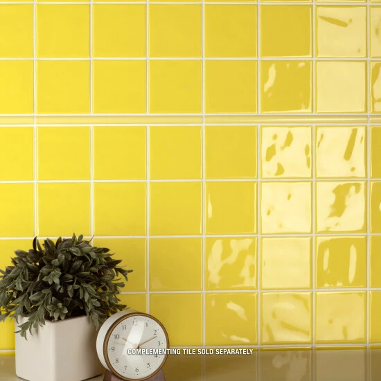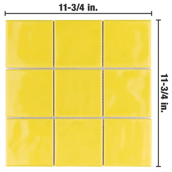 An enriched version of standard subway tile, our Twist Square Yellow Lemon 11-3/4 in. x 11-3/4 in. Ceramic Mosaic Wall Tile has the allure of classic style, but with a refreshingly modern twist. With slight undulation and a smooth glossy finish, this tile offers an appearance that is retro, futuristic and timeless all in one. It is subtle enough to seamlessly fit alongside various designs, while still interesting enough to stand out. This tile is tastefully smaller for a distinctive, unexpected element that will fit just about any style and space.Β These ceramic square pieces are arranged on an interlocking mesh backing in order to provide convenient installation. If desired, pieces may be removed and installed individually.Β It is great as a cohesive look or paired with other products in the Twist Collection. Intended for interior wall use, this tile is an excellent selection for backsplashes, fireplace facades and accent walls. Tile is the better choice for your space. This tile is made from natural ingredients, making it a healthy choice as it is free from allergens, VOCs, formaldehyde and PVC.