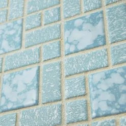 The University Blue 11-3/4 in. x 11-3/4 in. x 5 mm Porcelain Mosaic Tile is reminiscent of traditional, multi-texture and multi-color porcelain mosaic floor tile. Featuring a mottled finish and muted color palette, these tiles recreate a classic look with the durability and versatility of a modern tile. Use this tile virtually anywhere, due to its frost resistance, high slip resistance and P.E.I. rating of 4.