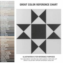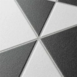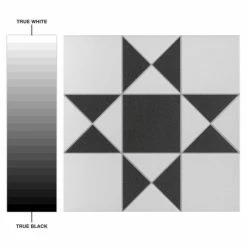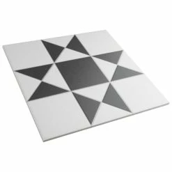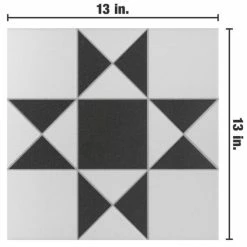 If you want a distinctive geometric mosaic look without the labor of assembly, the Vanity Blanco 13 in. x 13 in. Porcelain Floor and Wall Tile is perfect for you. This square tile features a glaze with realistic-looking grout lines edged around the triangles and squares that comprise this pattern, a stark and abstract matte black and white star reminiscent of a rustic handmade quilt. These durable tiles are suitable for just about any interior or outdoor application and will add a tasteful rustic touch to your space.