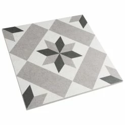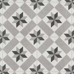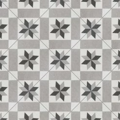 The Vintage Star Grey Encaustic 9-3/4 in. x 9-3/4 in. Porcelain Floor and Wall Tile is inspired by artisan cement tiles. The medium-sheen glaze features a pleasant mix of sharp, geometric angles in hues of inky gray, ash gray and white reminiscent of speckled cement. Use this durable encaustic-inspired tile with the rest of the geometric patterned Vintage series or as a lively accent for any application to your indoor or outdoor floors or walls. Tile is the better choice for your space. This tile is made from natural ingredients, making it a healthy choice as it is free from allergens, VOCs, formaldehyde and PVC.