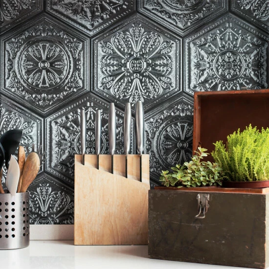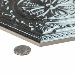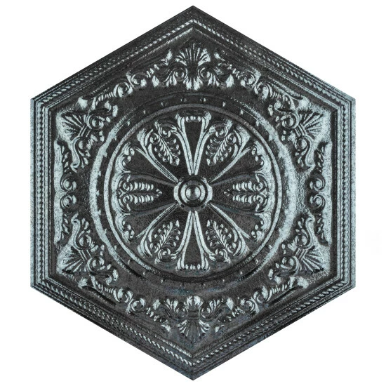 Inspired by the natural oxidation of metal, our Zinc Hex Silver Decor Porcelain Floor and Wall Tile evokes industrial elegance and sophistication. This hexagon tile features embossed old-world floral motifs in a highly reflective silver color tone. With a smooth, glossy finish, this metal-look porcelain tile offers chic decorative appeal that can blend into virtually any design theme, ranging from contemporary projects to traditional installations. Its impervious and frost-resistant features make this an ideal choice for indoor and outdoor installations including kitchens, bathrooms, backsplashes, showers, hallways, entryways, and patios. Tile is the better choice for your space. This tile is made from natural ingredients, making it a healthy choice as it is free from allergens, VOCs, formaldehyde, and PVC.